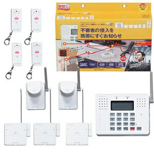 ●2種類のセンサーが侵入者を検地!■人感センサー人の動き、体温に反応。■マグネット振動センサー窓の開閉、振動に反応。●センサーが異常を感知すると、本体へ通信、本体が大音量アラームを発し、設定した電話番号(最大5箇所)へ自動通報。●通報を受けた電話から自宅音が確認でき、さらに自宅へ話しかけ(発声威嚇)できる機能が付き。●非常用電源で、停電も安心です。※電池交換をランプ付(リモコンキー除く)※通信距離は見通し約60m※ダイヤルUP本体・人感センサー2個・マグネト振動センサー3個・リモコンキー4個のセット品